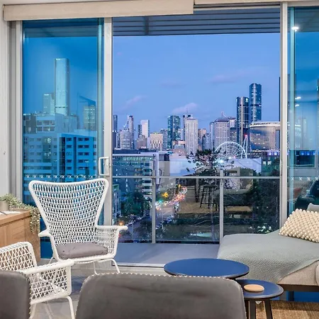 El apartamento Russell St Retreat Stunning City & Park Views cuenta con un patio, un balcón y una cocina, y comodidades como climatizador. Este alojamiento incluye lavadora para tu comodidad. También encontrarás secadores de pelo, secadora y artículos de aseo de cortesía.